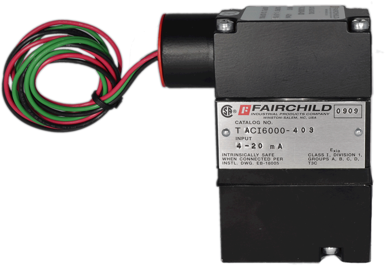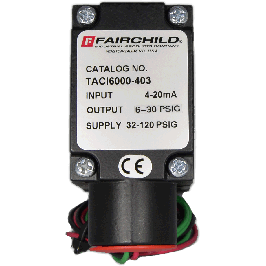 Brand: Fairchild Industrial Products - by RotorkThe Rotork Fairchild T6000 compact size E/P, I/P pressure transducer is a field reversible unit that provides an output directly or inversely proportional to the input signal. Its six available output pressure ranges and six available input signal ranges meet most process and machine requirements.