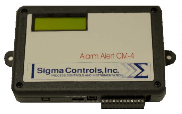 Brand: Sigma Controls, Inc.Monitoring: The Alarm Alert CM-4 continuously monitors up to Four (4) inputs and the line voltage via its wall mount transformer. Remote Status Checking: The Alarm Alert can be called anytime to check the state of any input and the line voltage. Emergency Phone Calls: When an input is not in its programmed normal state for longer than its programmed time delay or the line voltage is out for longer than five minutes, the Alarm Alert will call all programmed cell or E-mail addresses until contact is made. If contact has not been made after dialing all phone numbers, the Alarm Alert will wait twenty minutes and then begin calling again. This sequence is repeated until contact is made. When the Alarm Alert calls CM-4 goes into an alarm condition it will send via text or E-mail unit ID message and the current state of the input that caused the alarm.