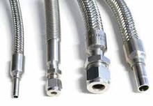 - Stainless steel construction of core bellows tube, wire braid, and end connection