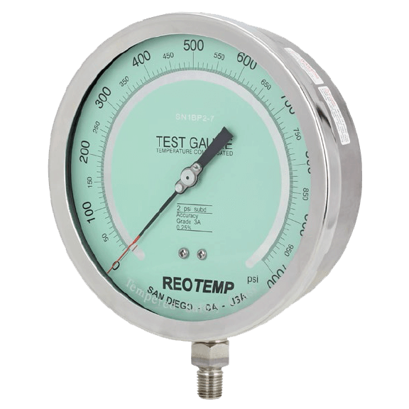 Brand: REOTEMP Instruments CorporationREOTEMP’s Series PL60 test gauge is designed for use in laboratories, testing or calibration facilities, or wherever accuracy and repeatability are of prime importance. Rugged, all-welded stainless steel construction makes this gauge suitable for almost any test application. Reading error due to parallax is eliminated by use of a knife-edge pointer and mirror dial. Features/Benefits: