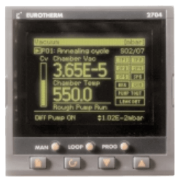 The 2704 Vacuum controller is capable of being used solely to control the vacuum pump down sequence of a furnace, or as an integrated furnace controller where both temperature and vacuum are controlled. The 2704 Vacuum Controller can have all of the features of the standard 2704 including three control loops, Setpoint Programming along with maths and logic compatability.
